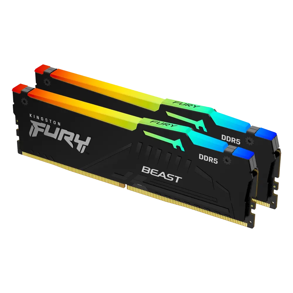 Kingston FURY Beast RGB DDR5‑6000MT/s CL30 64GB(2×32GB) KF560C30BBAK2-64 Memory – Intel® XMP 3.0, 1.4V, Dual‑Channel Kit